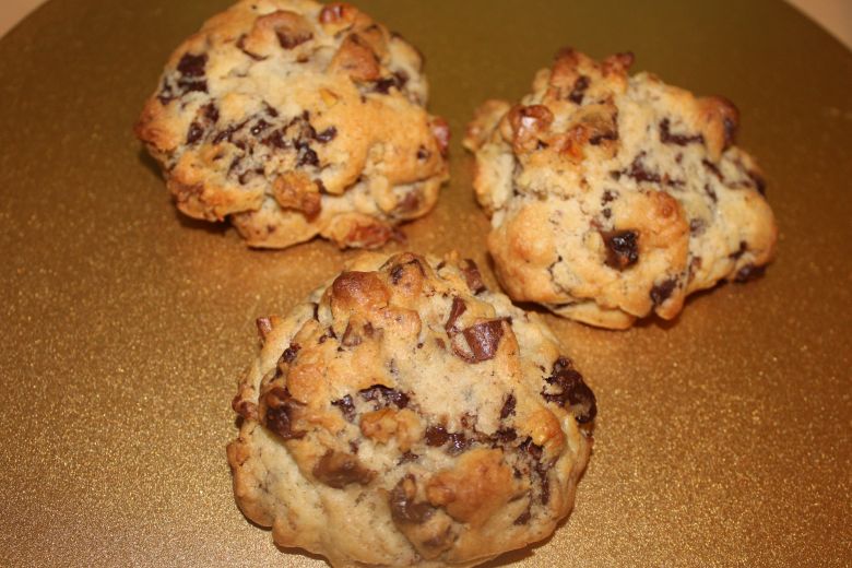 1. Cookie cu ciocolată și nucă – un echilibru perfect între bucățile generoase de ciocolată neagră și aroma intensă a nucilor . Aromat, bogat și sățios.